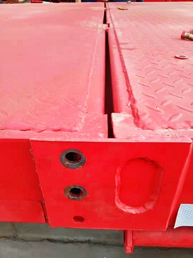 we will design one tail part connected by strong bolts ,after you received the trailer you should connecting them by strong bolts first and then welding the two parts together ,Its easily work for welding man.